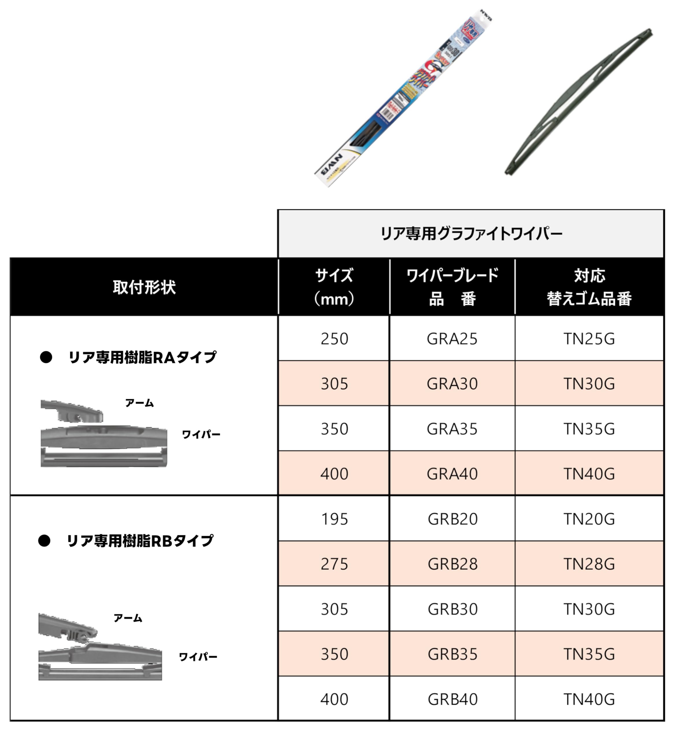 NWB(エヌダブルビー) 車用 リヤ専用グラファイト樹脂ワイパー ブレード 305mm RAタイプ GRA30