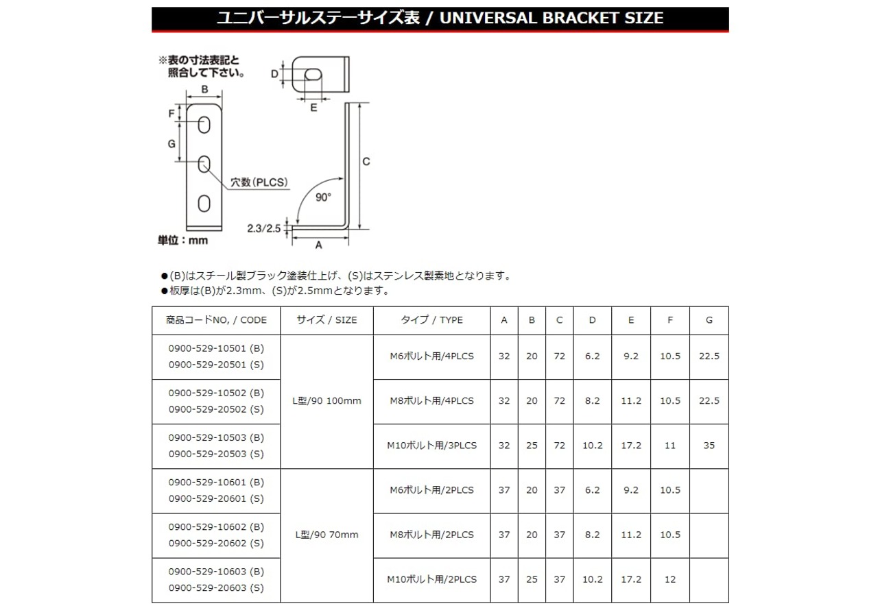 キタコ(KITACO) ユバーサルステー L型/90°/70mm M6ボルト用/2PLCS 汎用 ブラック 0900-529-10601