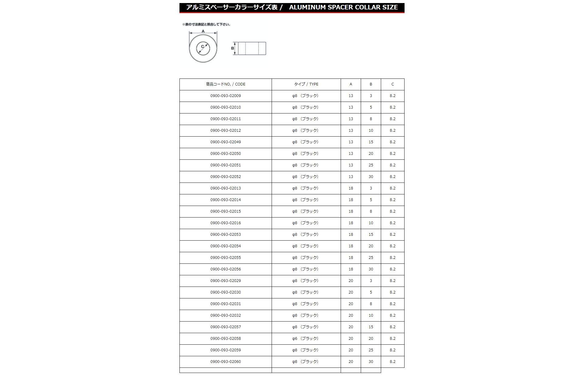 キタコ(KITACO) アルミスペーサーカラー φ8 20x10 汎用 A2017 1個入り ブラック 0900-093-02032