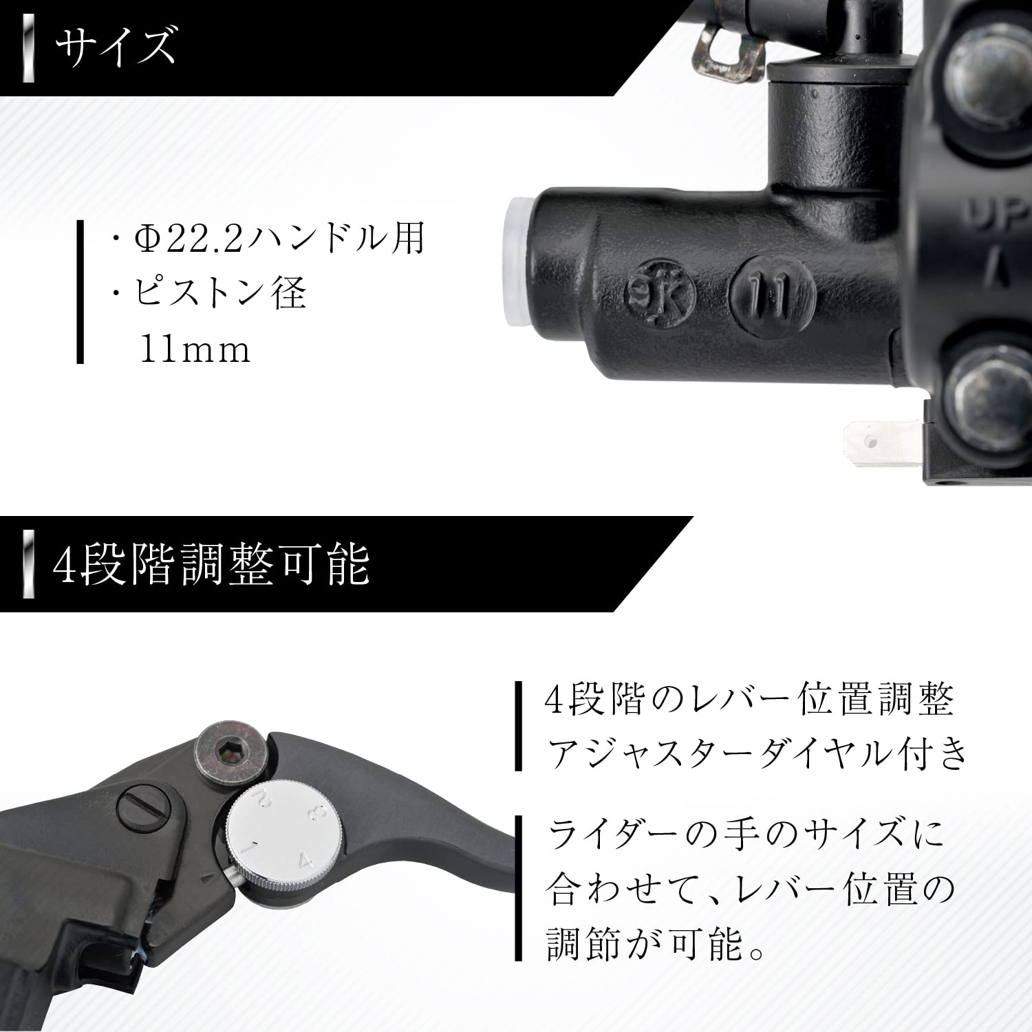 ●ノーマル車のマスターシリンダーピストン径をよくお確かめの上お買い求めください。極端にピストン径が異なった場合にはレバーストロークが大きく変わり、事故につながります。