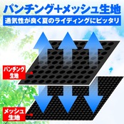 パンチングゴートレザーとメッシュ生地を使用し高い通気性と安全性を確保。