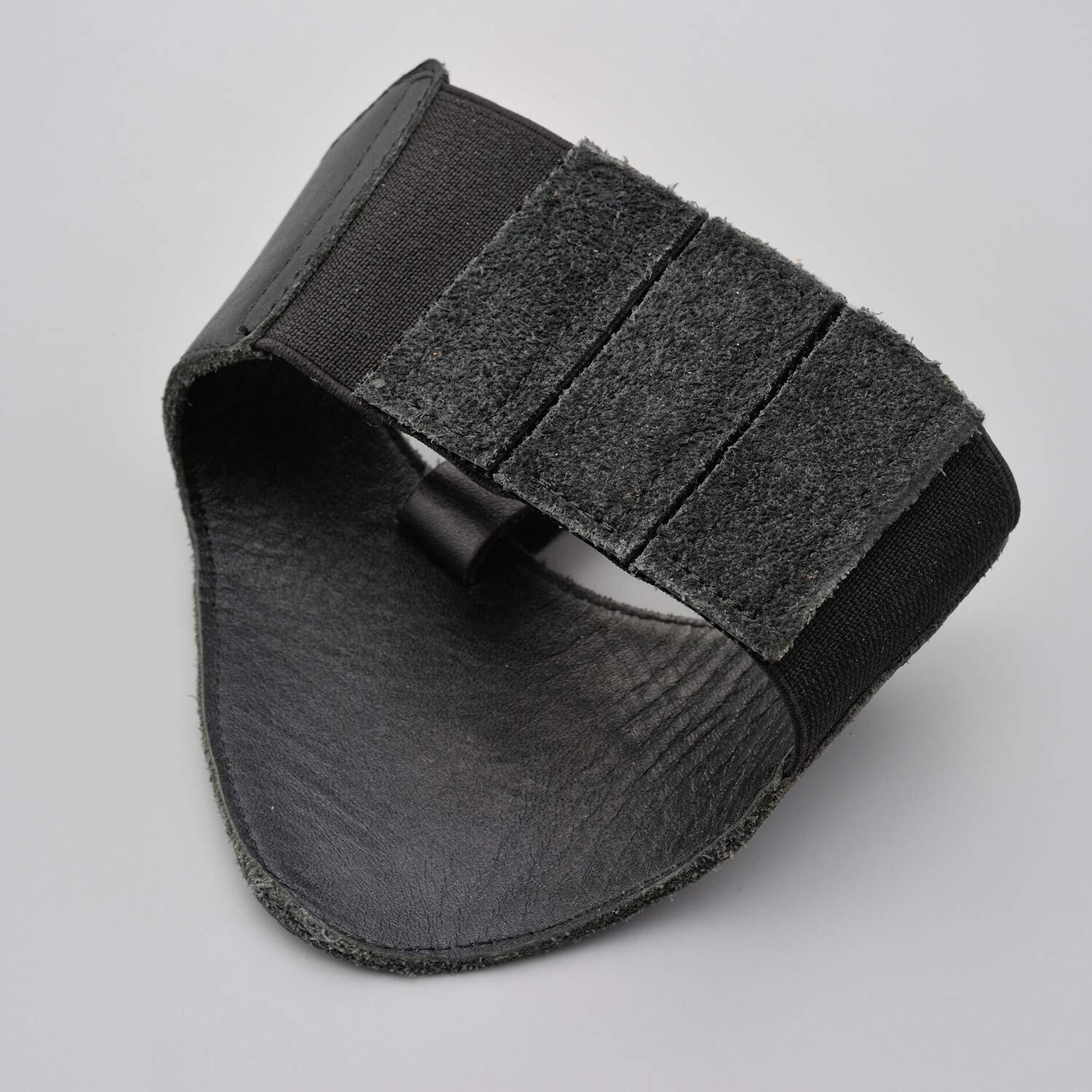 【仕様2】革の形状を、靴のくびれ部分で固定できるように設計。着けたまま歩いても外れにくい仕様です。