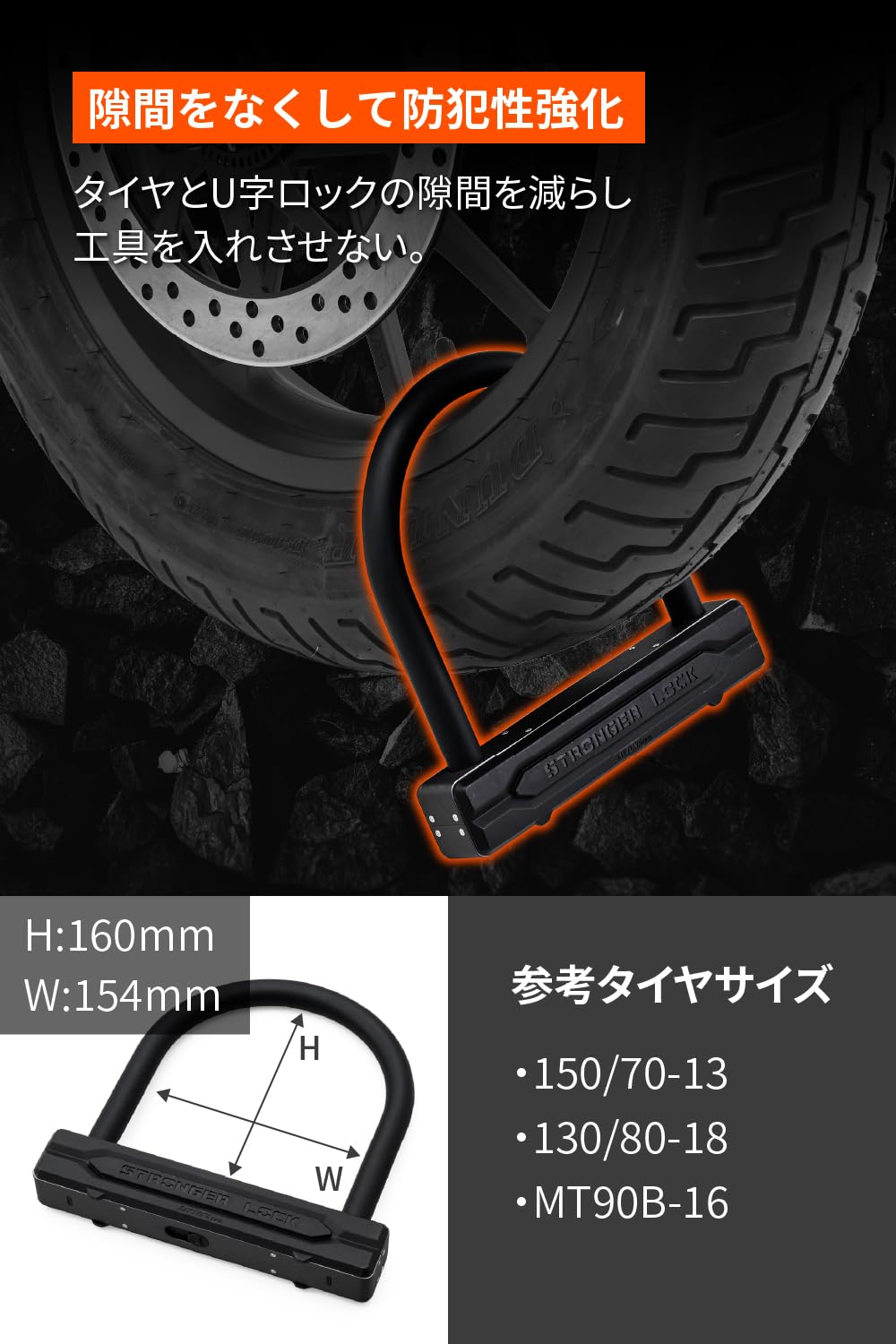 ・タイヤロック部分の寸法:縦160×横154mm