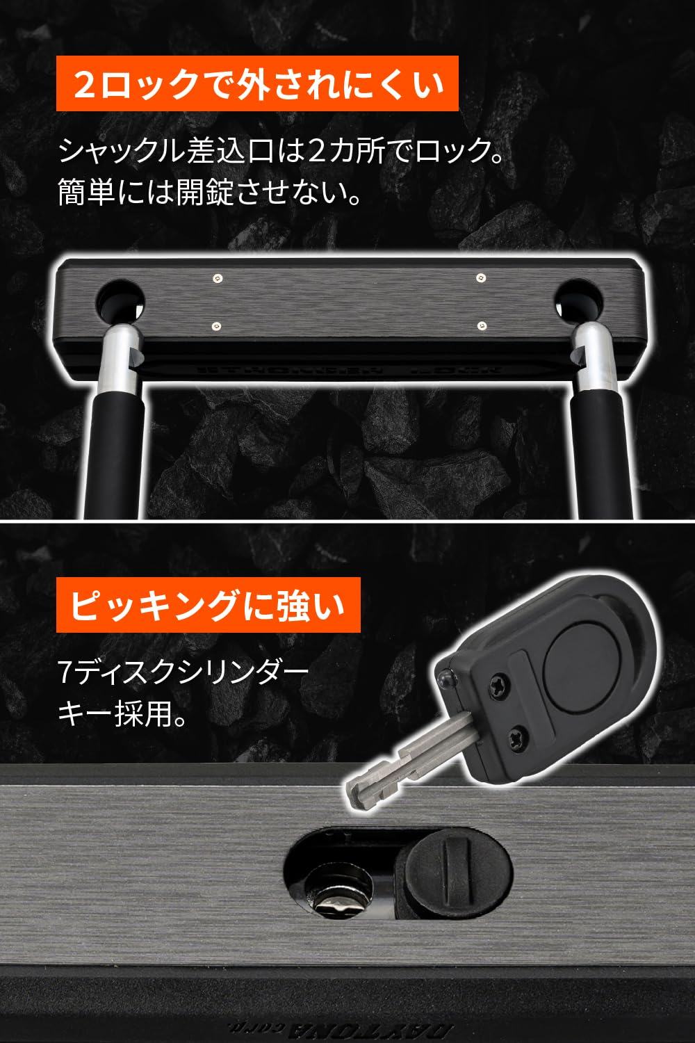 シャックル差込口は開錠されにくい2ロックを採用。