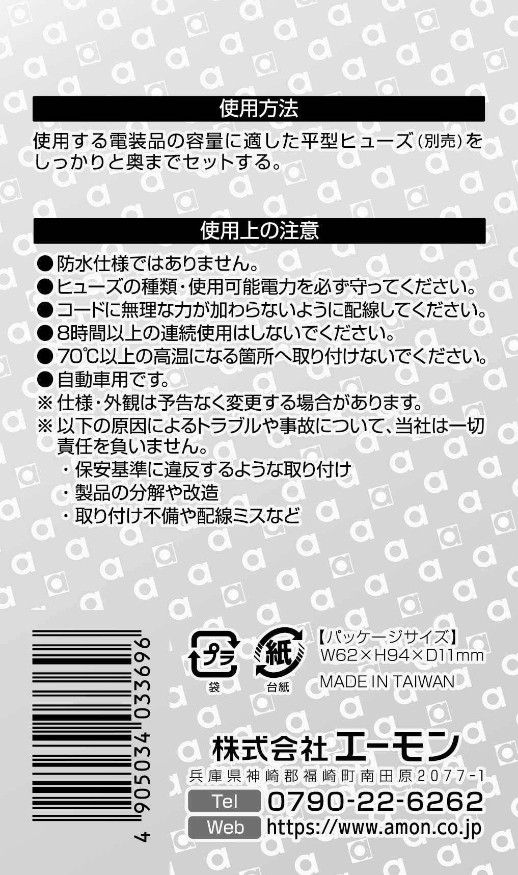 【限定大特価】エーモン(amon) 平型ヒューズホルダー DC12V・180W/DC24V・360W 15A(MAX) 3369