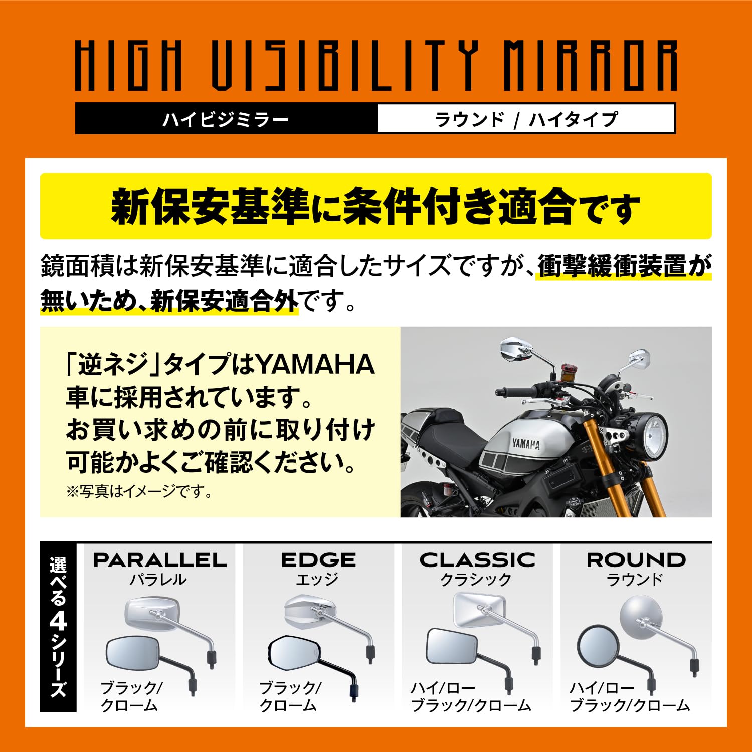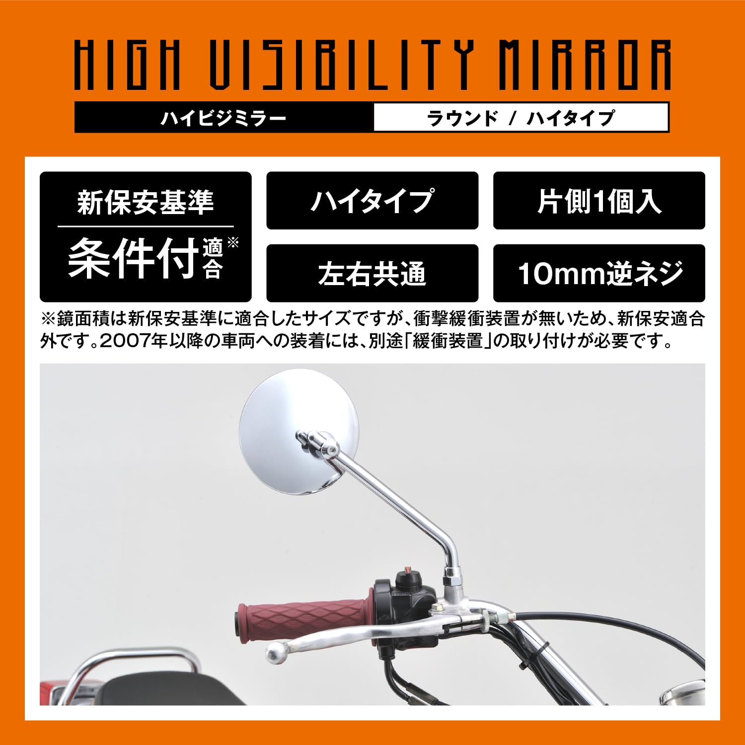 デイトナ(Dayotna) バイクミラー ハイビジミラー 10mm逆ネジ 耐振 広角 ラウンド ハイ クローム 右専用 片側1本 98792