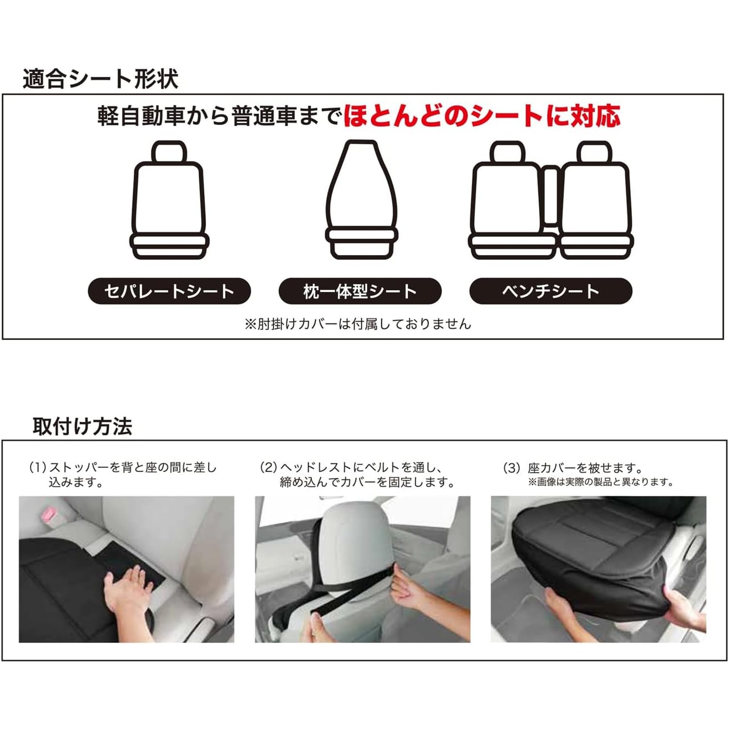 ※本品は多くの車種に幅広く取付けできるように設計されたフリーサイズカバーです。本体シートの機能(リクライニング、アームレスト、レバー、ボタン等)の妨げになる場合があります。