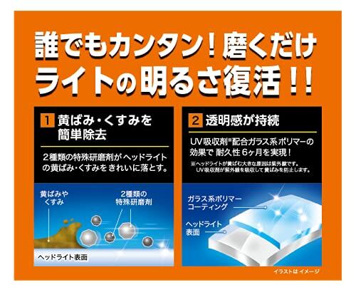 黄ばみのライトを復元 クリナー+コーティング剤の1液タイプ 耐久性6ケ月 3回分 クロス付き