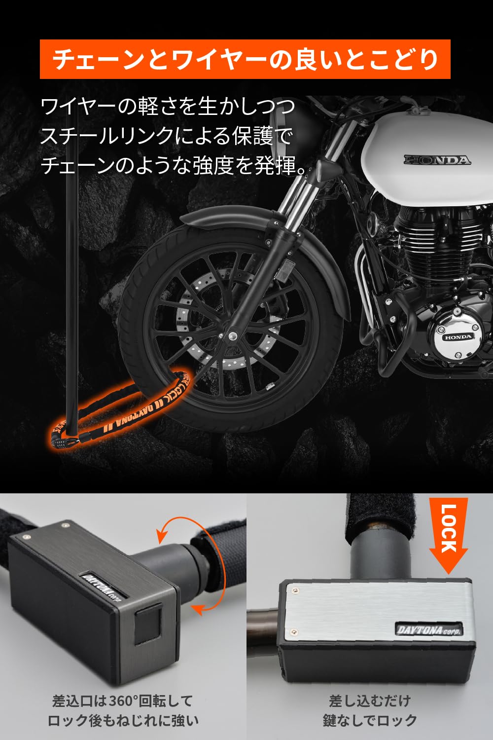 デイトナ(Daytona) バイク用 ワイヤーロック φ20mm ストロンガースチールリンクロック 鍵タイプ 1200mm ブラック 97661