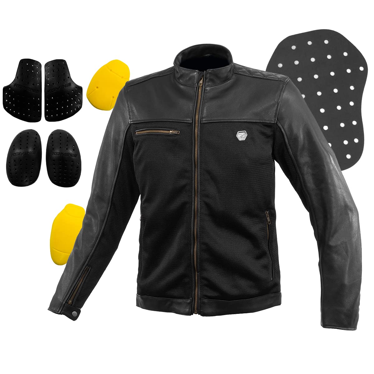 [KOMINE] バイク用 ジャケット JK-166 ハーフレザーメッシュジャケット 07-166 メンズ ブラック L