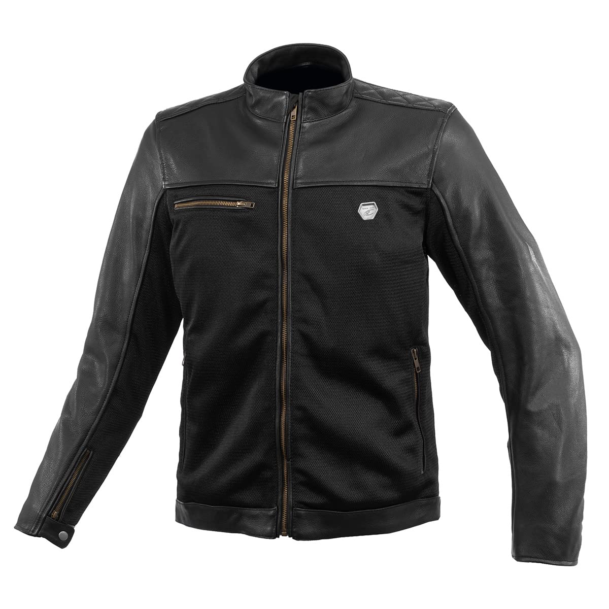 レザー×メッシュのコンビネーションジャケット。肩・肘・脊椎・胸部のプロテクターは標準装備。乗車姿勢の取りやすい立体裁断を採用。・レザー × メッシュのジャケット ・乗車姿勢をとりやすい立体パターン採用 ・CE規格レベル2ソフトプロテクター標準装備<肩><肘> ・EVAパッドを標準装備<脊椎> ・胸部プロテクター標準装備 ・夜間被視認性を高めるリフレクターパイピング<背中> ・偽造防止ラベル