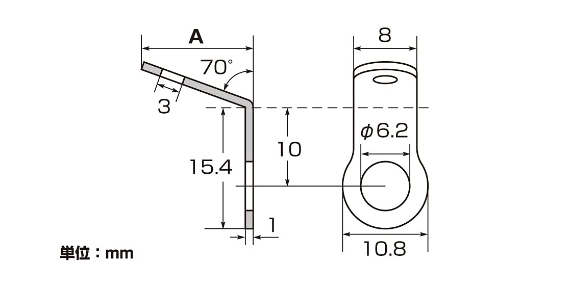 タイプ:M6 x L10サイズ A = 14mm ※画像参照