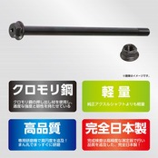 バネ下重量を軽減させる、中空穴を空けたスチール製、ブラック仕上げの軽量アクスルシャフトです。