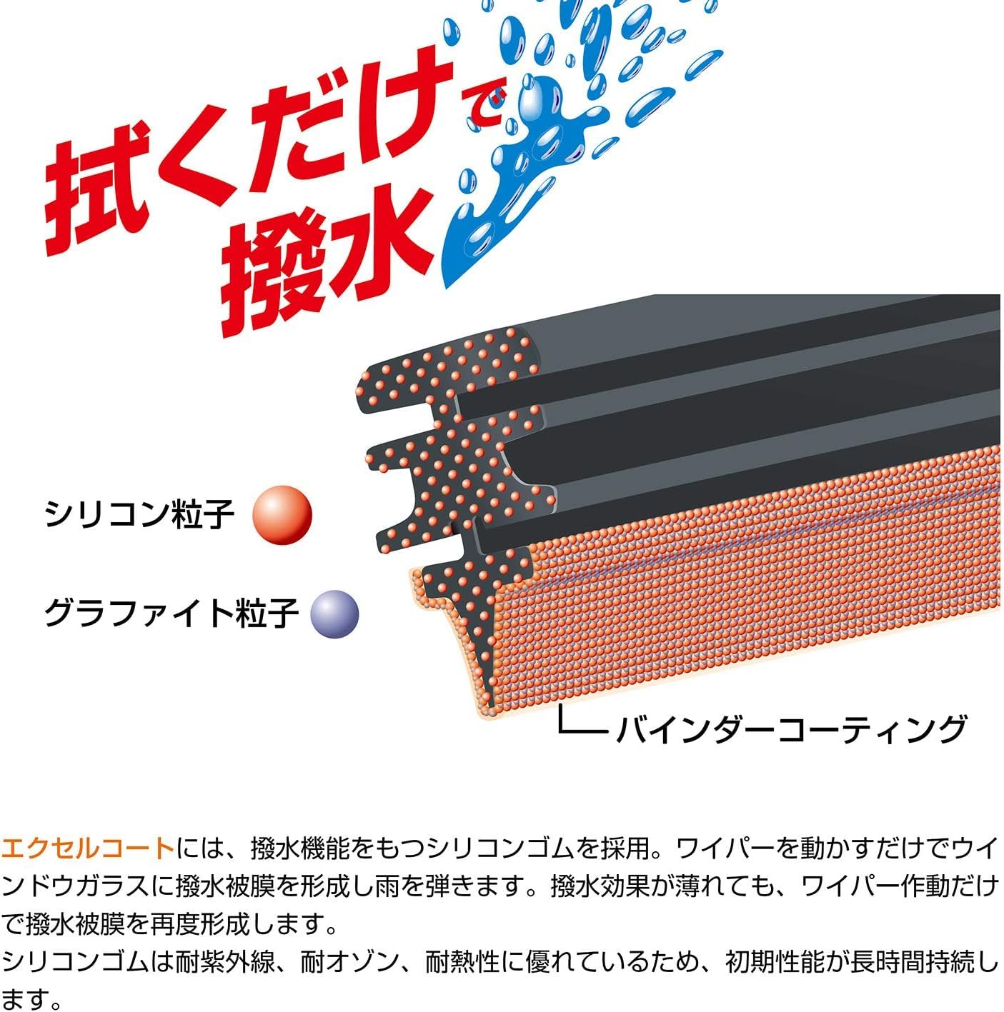 エクセルコートワイパーは最高品質シリコンゴムを採用。ワイパーを作動させるだけで撥水膜を形成し雨をはじきます。ウインドウガラスにガラス撥水コーティングをされていても使用でき、撥水効果が薄れてきてもワイパーを作動のみで撥水膜を再度形成します。