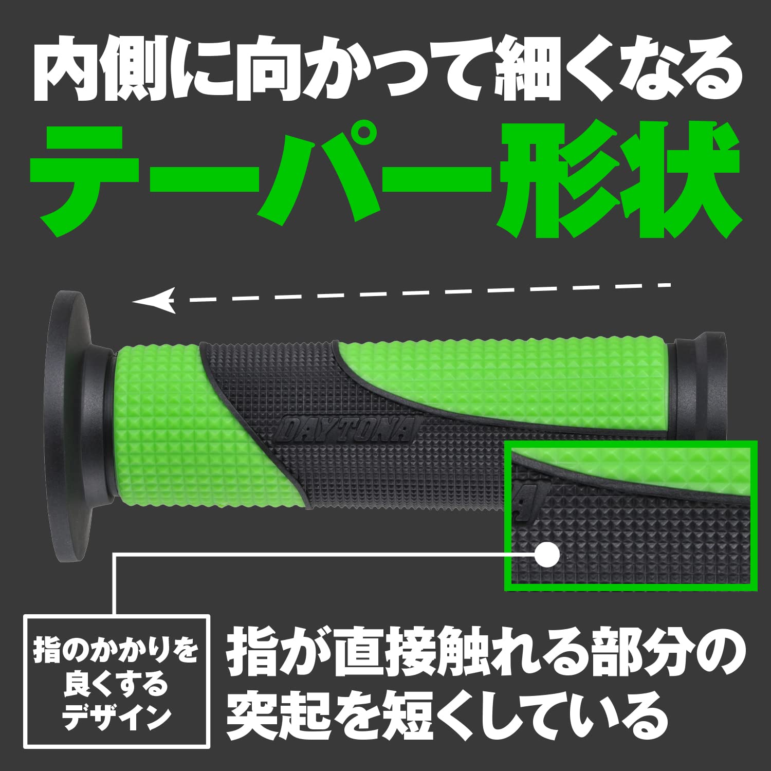 デイトナ(Daytona) グリッピーグリップ バイク用 グリップ ハンドル径Φ22.2用 122mm テーパード形状 エンド貫通 GG-D-TAPERD-BASE グリーン 25158