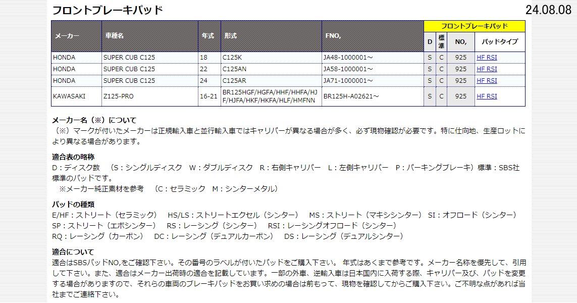 【数量限定】キタコ(KITACO) SBS ブレーキパッド 925HF セラミック Z125 PRO 777-0925000