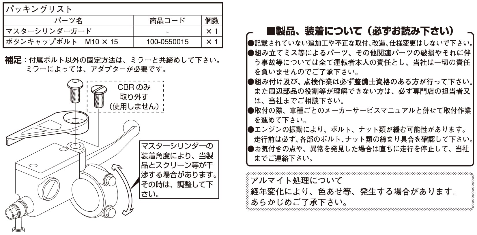 万一の転倒によるマスターシリンダーへのダメージを軽減と、ドレスアップを兼ねたガードです。