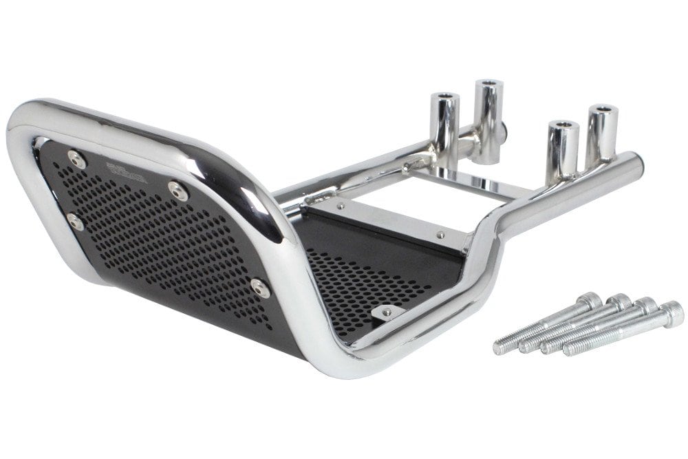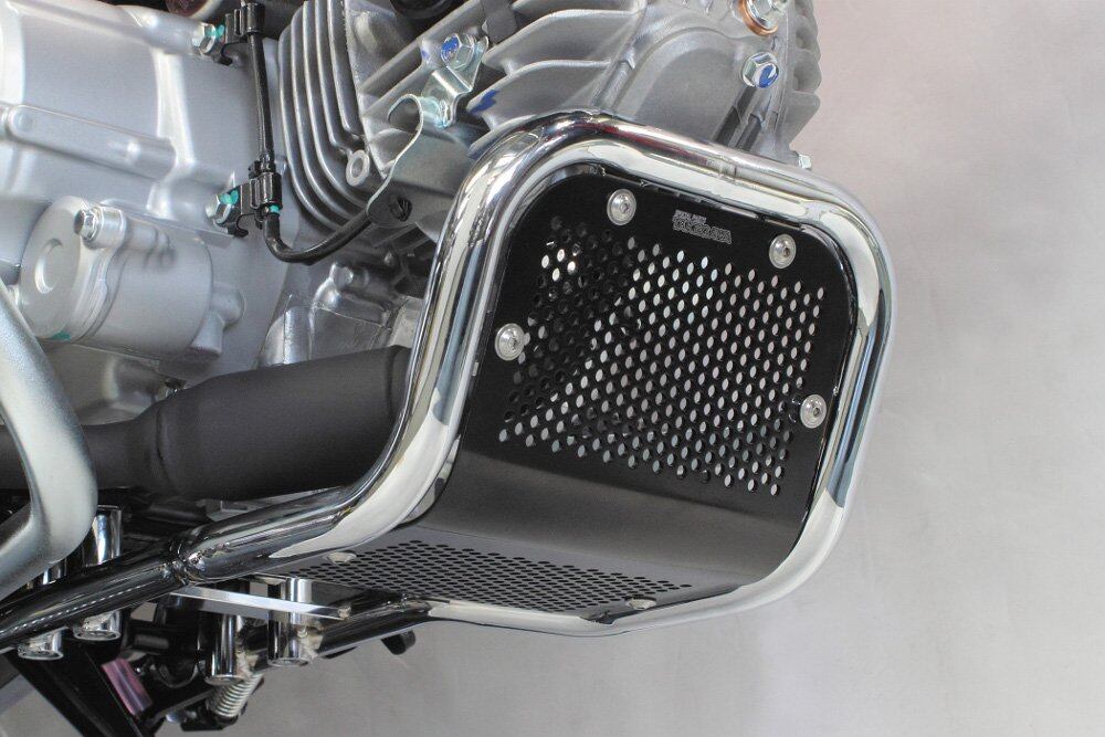 クランクケース、シリンダーヘッドを保護する為のエンジンガードにアルミ製パンチングプレートを加え、デザイン性を高めたエンジンガードキットです。