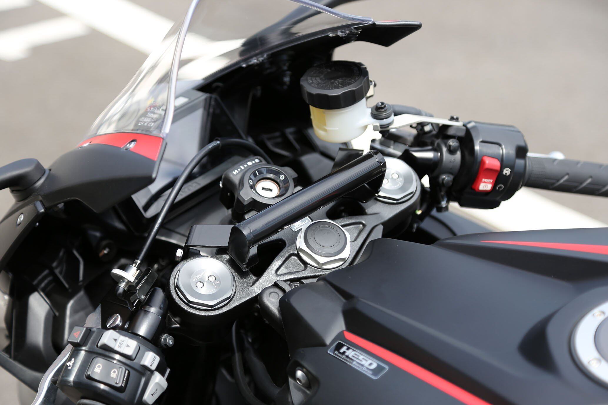 純正ハンドルに対応させた車種専用設計なのでデバイス等をバランスの取れた見やすい位置へ取付可能。
