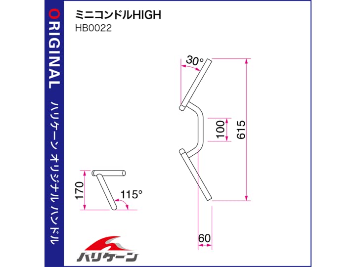 ハリケーン(HURRICANE) ハンドルバー P7/8インチ ミニコンドルHIGH クロームメッキ HB0022C