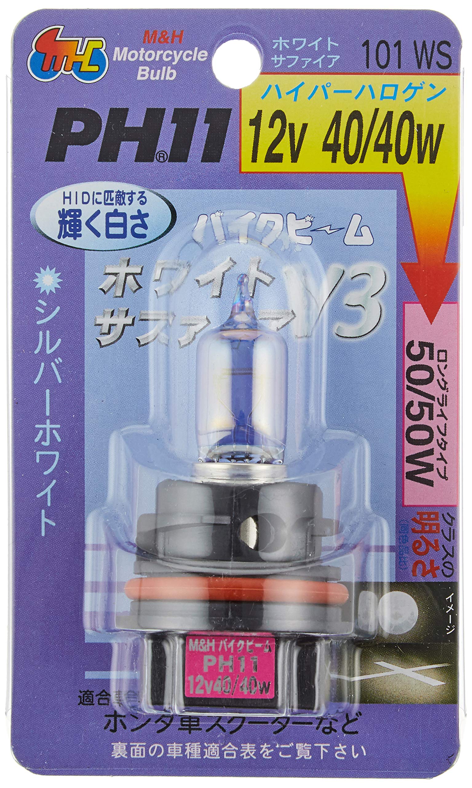 M&Hマツシマ ハロゲンバルブ 12V40/40W(50/50Wクラス) ホワイトサファイア PH11 101WS