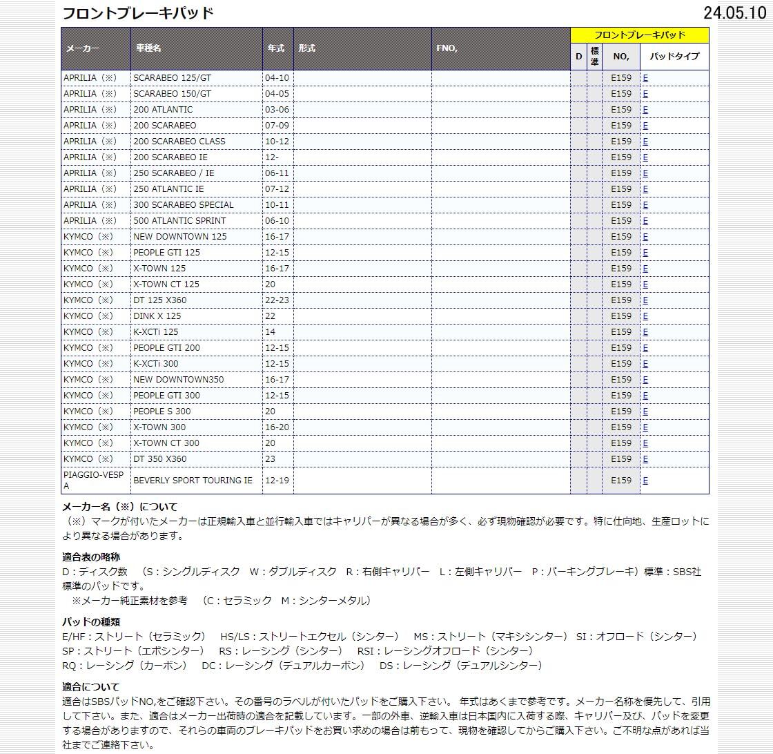 キタコ(KITACO) SBS ブレーキパッド E159 セラミック アプリリア キムコ 等 777-0159000
