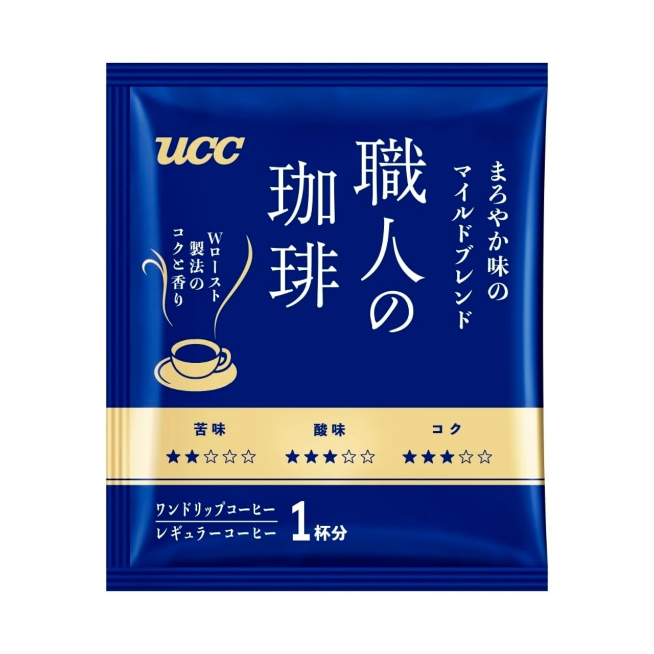 毎日の満足、確かな味わい、UCC職人の長年にわたる焙煎とブレンド技術で、毎日飽きない定番コーヒーを実現、おいしい! 簡単! 便利! ブラック派におすすめのバランスのとれた口あたりのやさしい味わいのブレンドです。