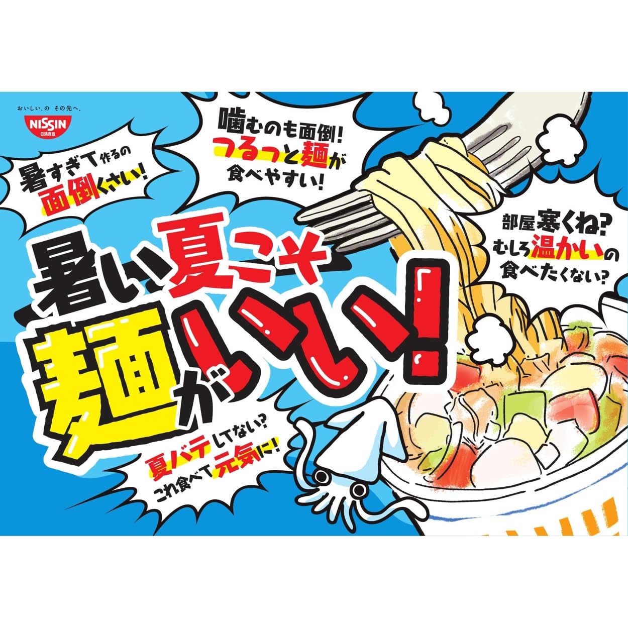 原材料:油揚げめん(小麦粉、植物油脂、食塩、たん白加水分解物、醤油)、いか、キャベツ、ポークエキス、チキンエキス、味付卵、魚肉練り製品、糖類、香辛料、醤油、乳等を主要原料とする食品、野菜調味油、ねぎ、野菜エキス、たん白加水分解物、魚介エキス、加工でん粉、調味料(アミノ酸等)、炭酸Ca、かんすい、増粘多糖類、酸味料、カラメル色素、紅麹色素、乳化剤、香料、酸化防止剤(ビタミンE)、カロチノイド色素、香辛料抽出物、ビタミンB2、ビタミンB1、(原材料の一部に落花生、かに、ゼラチンを含む)