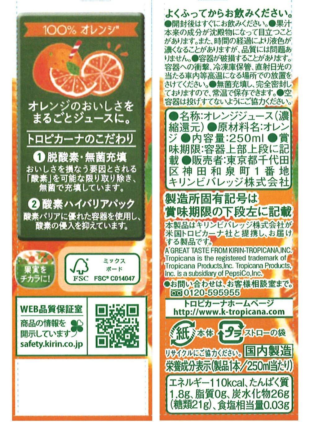 トロピカーナ 100% オレンジ 250ml×24本 パック