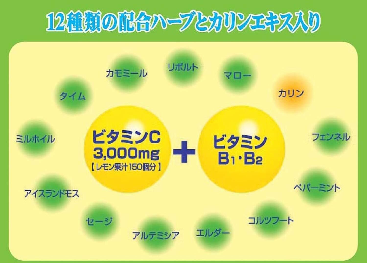 1袋に3000mgのビタミンC(レモン果汁150個分)と、ビタミンB1・B2が配合されたノンシュガーのど飴(のどあめ)です。