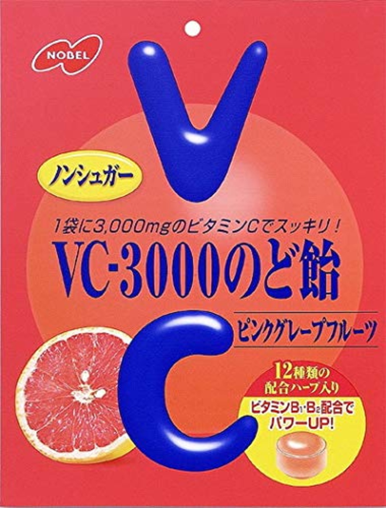 ノーベル製菓 VC-3000のど飴 ピンクグレープフルーツ 90g×6袋 (ケース販売)