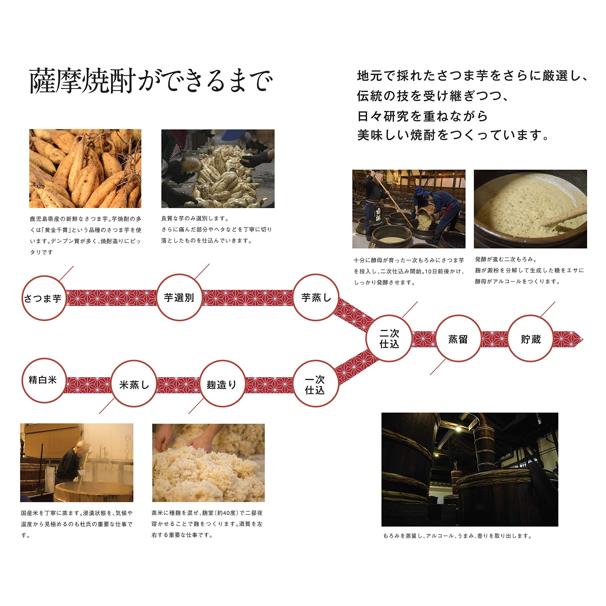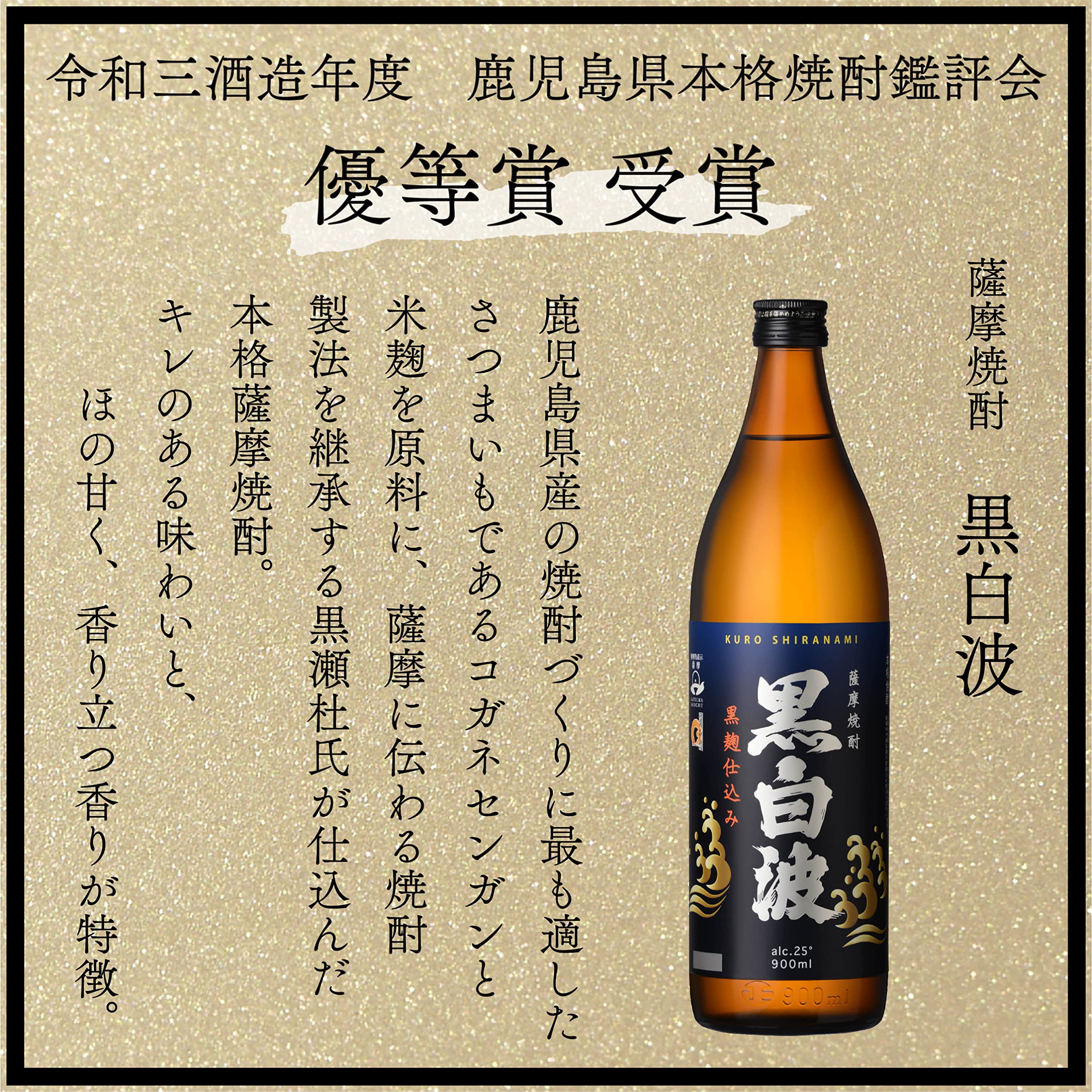 黒白波は淡麗な中にも豊かな香りを持った芋焼酎へ進化しました。オンザロック、濃いめの水割りでじっくり楽しめる味わいを実現しました。「ほの甘く、香り立つ」が特長です。元来、黒麹焼酎づくりを得意とする黒瀬杜氏が仕込んだ本場の黒。黒麹ならではの甘さとコクはお湯割り、ロックでいっそう引き立ちます。