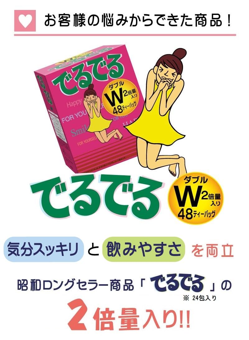 2倍量のでるでるを1箱に詰め込んだ、お得な商品。多くのでるでるリピーターに、ご愛飲いただいております。