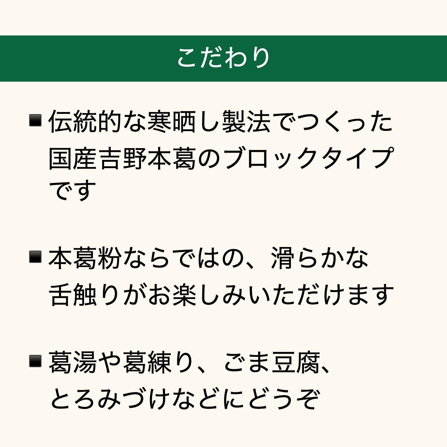 国内産本葛粉100% 伝統的な寒晒し製法 ブロックタイプ ■本葛粉ならではの、滑らかな舌触り ■葛湯や葛練り、ごま豆腐、とろみづけなどに