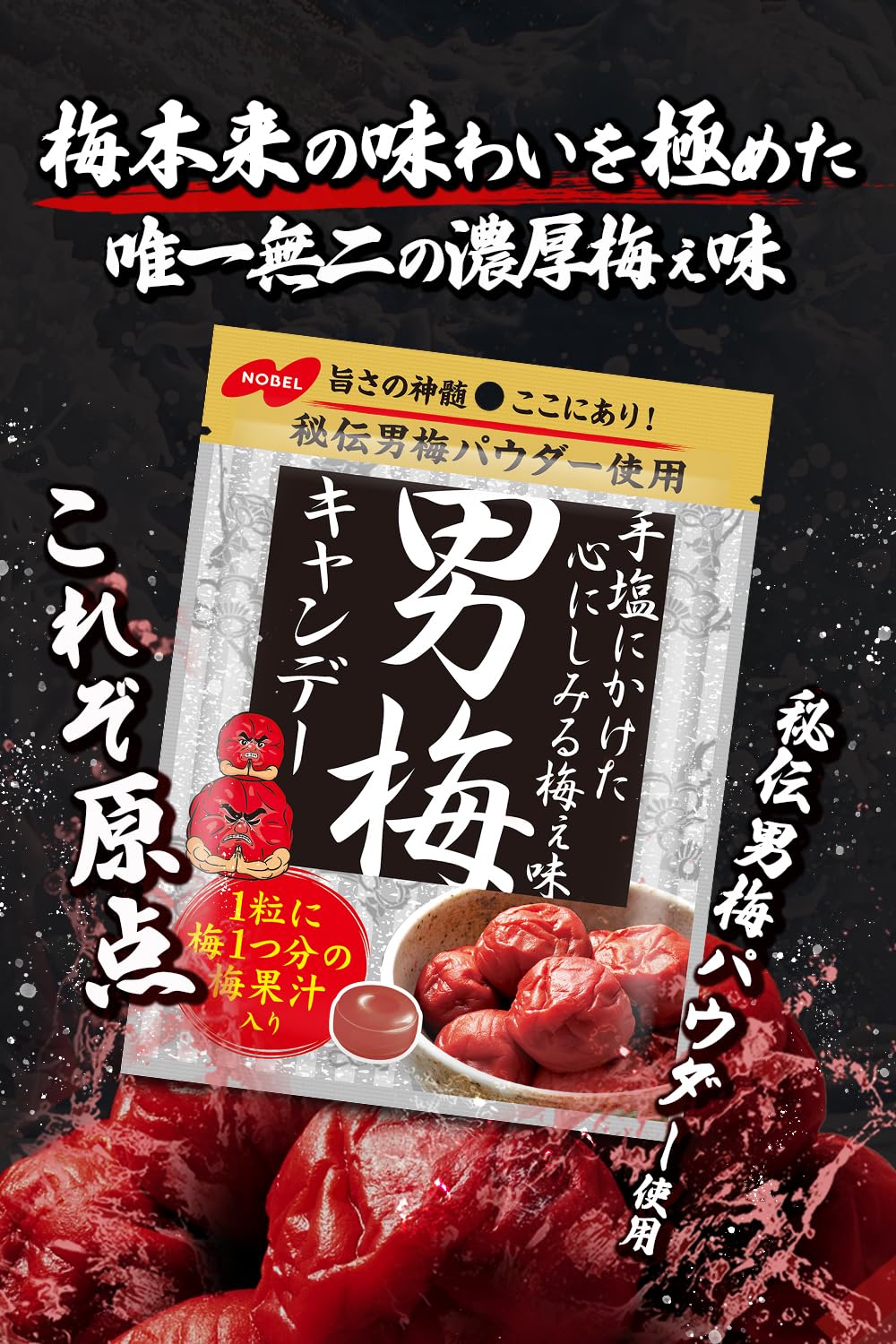 1粒に梅1つ分の梅果汁をつめ込み、梅本来の旨さを凝縮した「男梅」がパワーアップ!