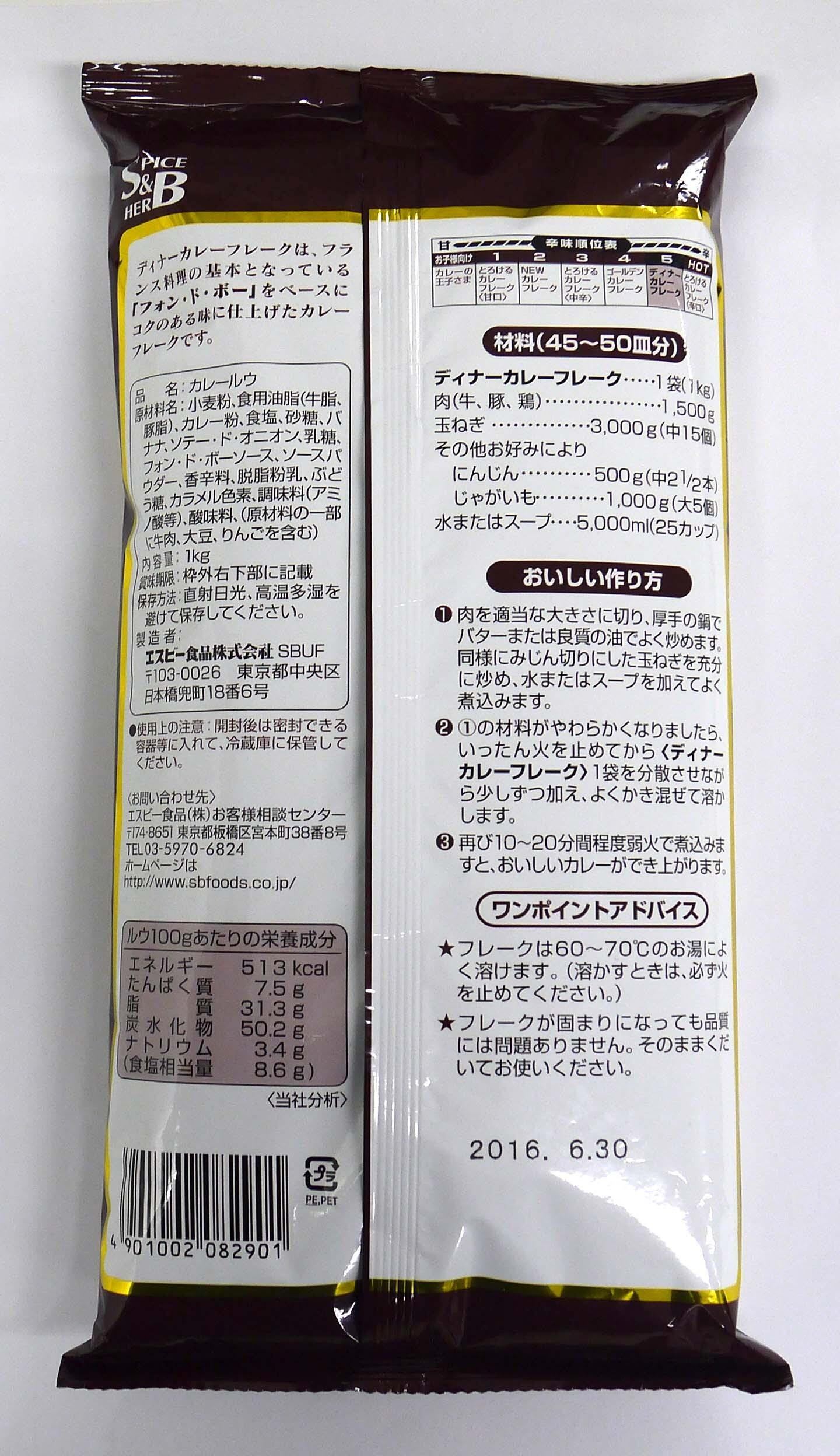 ディナーシリーズ S&B ディナーカレーフレーク 1Kg