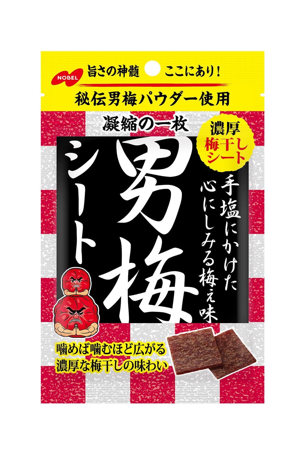 男梅シリーズの特徴である噛めば噛むほどしみ出す凝縮された濃厚な梅ぼしの味わいをそのままに、シート状になっている形が食べやすい梅加工菓子です。