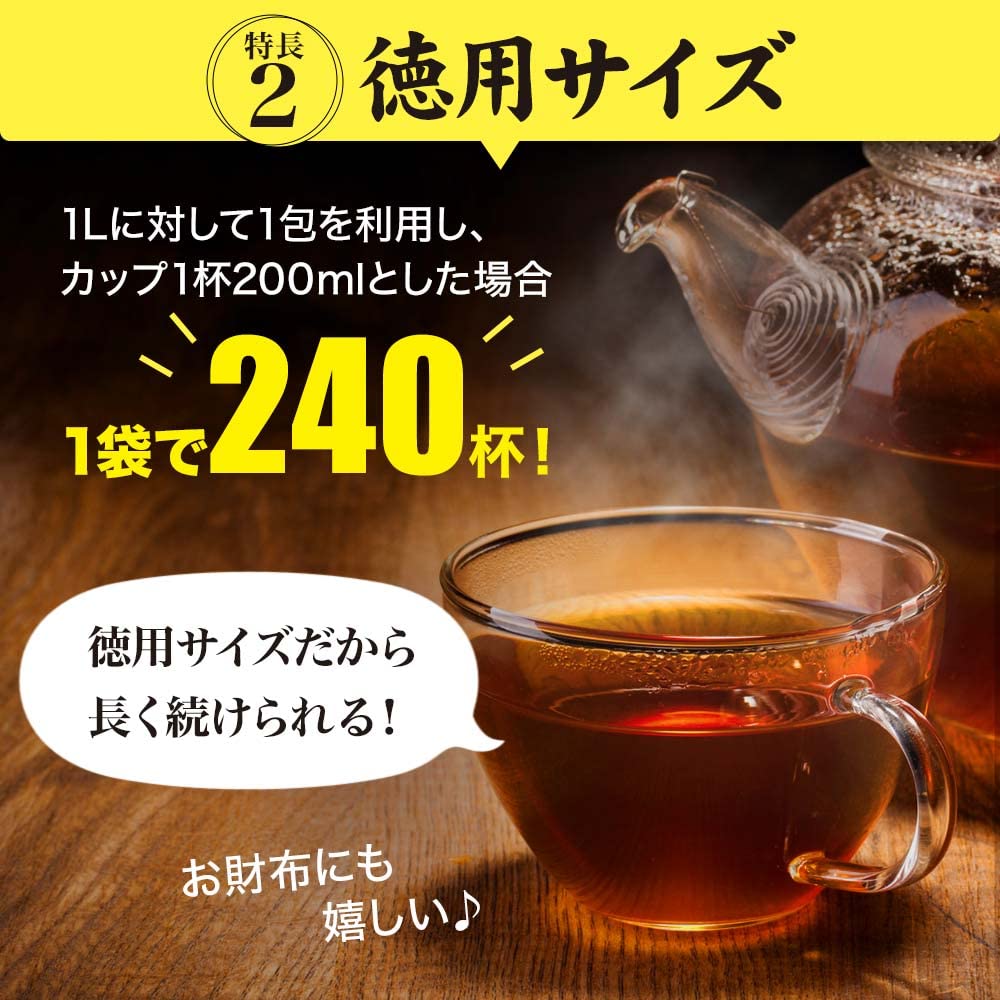約500ml~1lの沸騰したお湯に1~2包を入れ、とろ火で3~5分ほど煮出して1日数回に分けてその日のうちにご飲用ください。煮出した後、ティーパックをそのまま入れておく場合、濃くなる時は取り出してください。冷やしても美味しくご飲用頂けます。