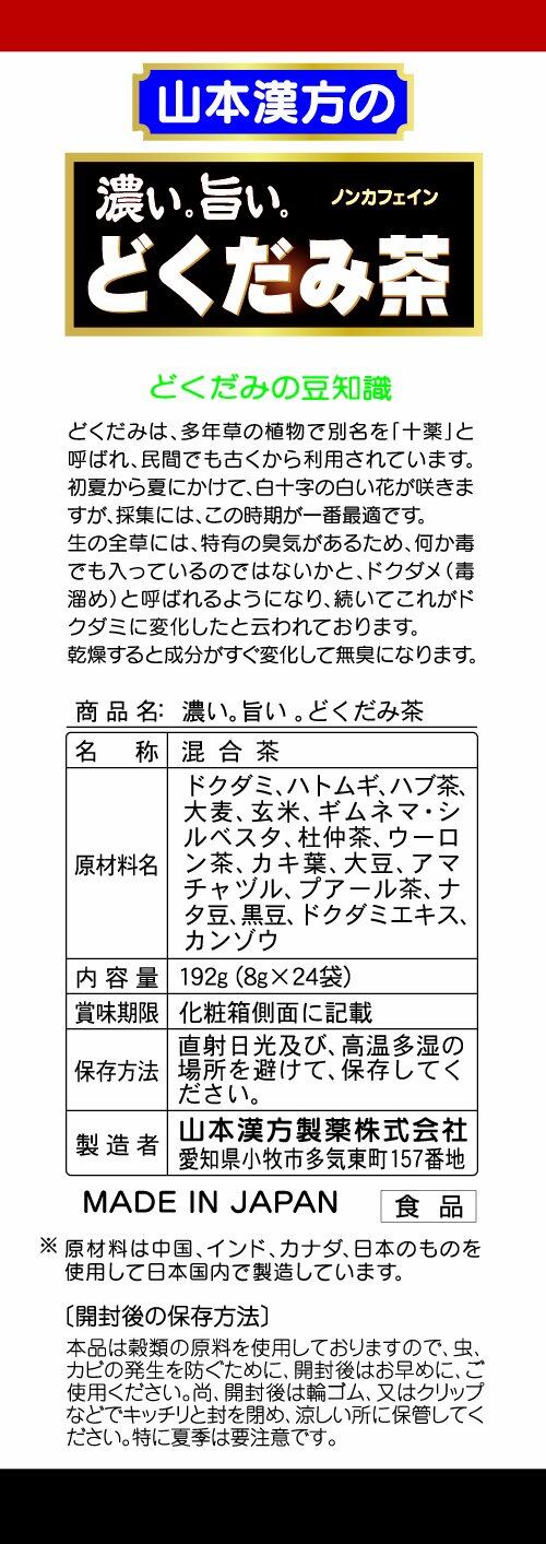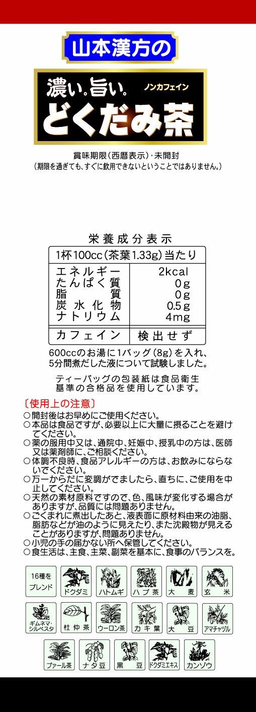 どくだみを主原料に、ハトムギ、ハブ茶、どくだみエキスなど、からだに良い16種類の健康素材をバランスよくブレンド。濃くておいしい風味にこだわったティーバックタイプの健康茶です。
