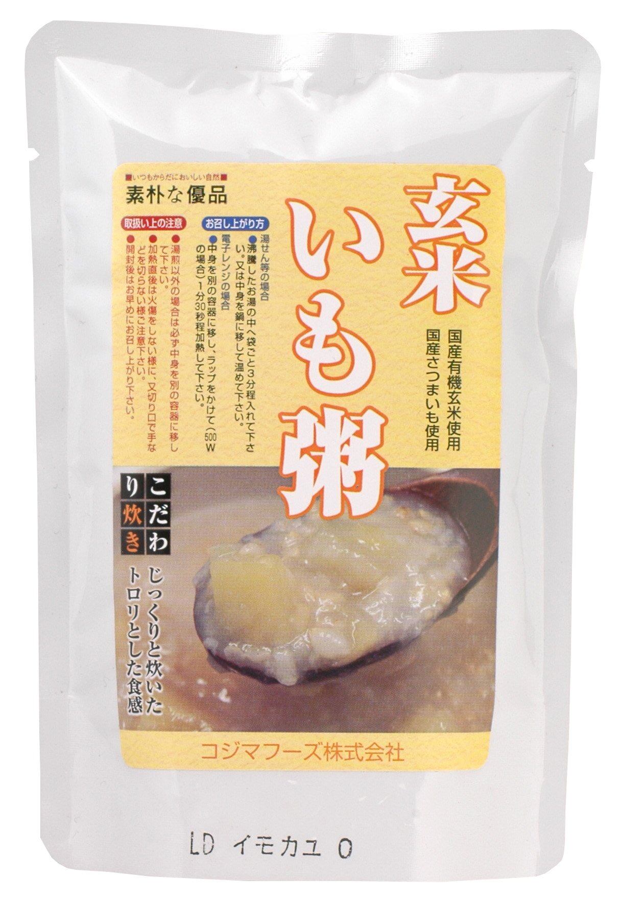 国内産水稲うるち玄米とさつまいもを鉄釜で調理した、こだわりの玄米いも粥です。米は山形産ひとめぼれ、食塩は海の精を使用。 国内産有機うるち玄米と国内産さつまいもを鉄釜でじっくりと炊き上げました。玄米が初めての方でも おいしくいただけるお粥です。 食塩は海の精を使用しています。 玄米のフィチン酸が新陳代謝を高め、繊維質は整腸作用を活発にします。