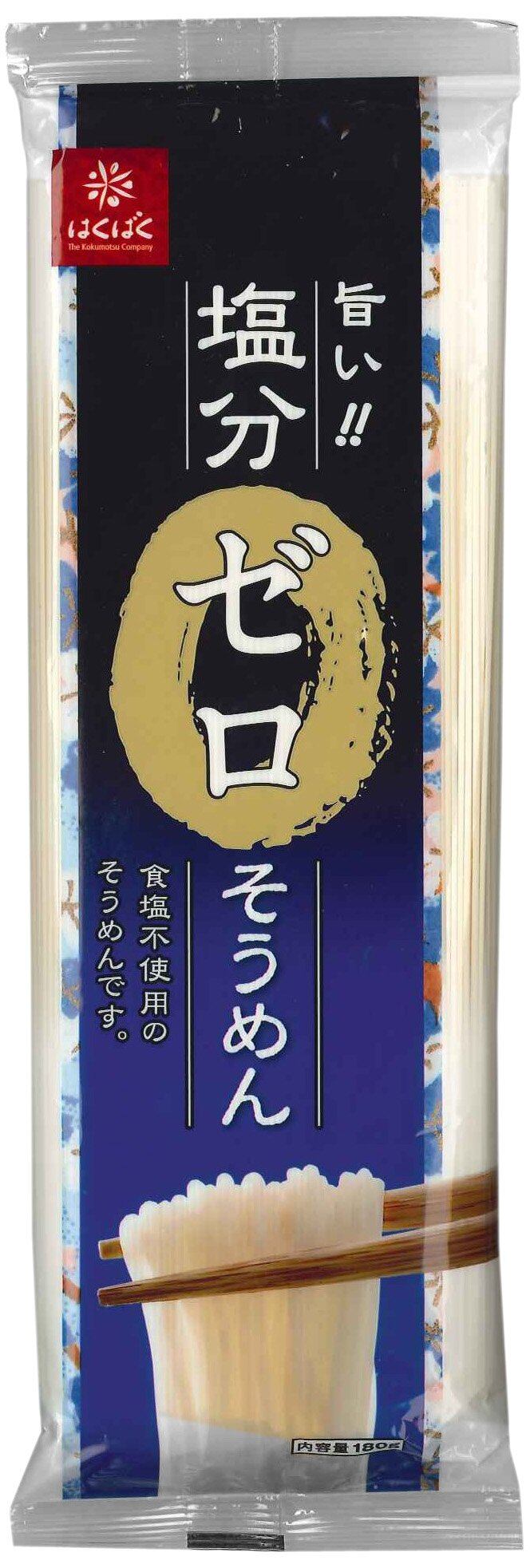 食塩不使用のそうめんです。塩分を気にする方が安心して召し上がっていただける商品です。食塩不使用でもしっかりとしたコシをもたせるための生地作り、はくばくこだわりの多加水熟成製法により、のどごしにもこだわりました。