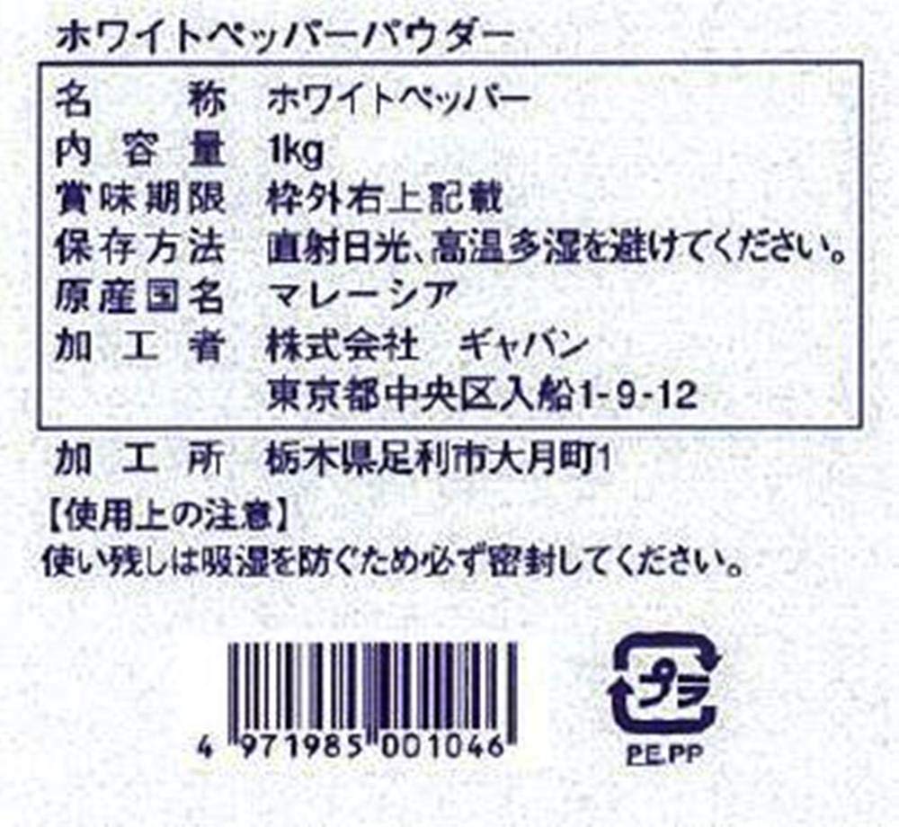 【大特価商品】ギャバン ホワイトペッパー パウダー 1袋
