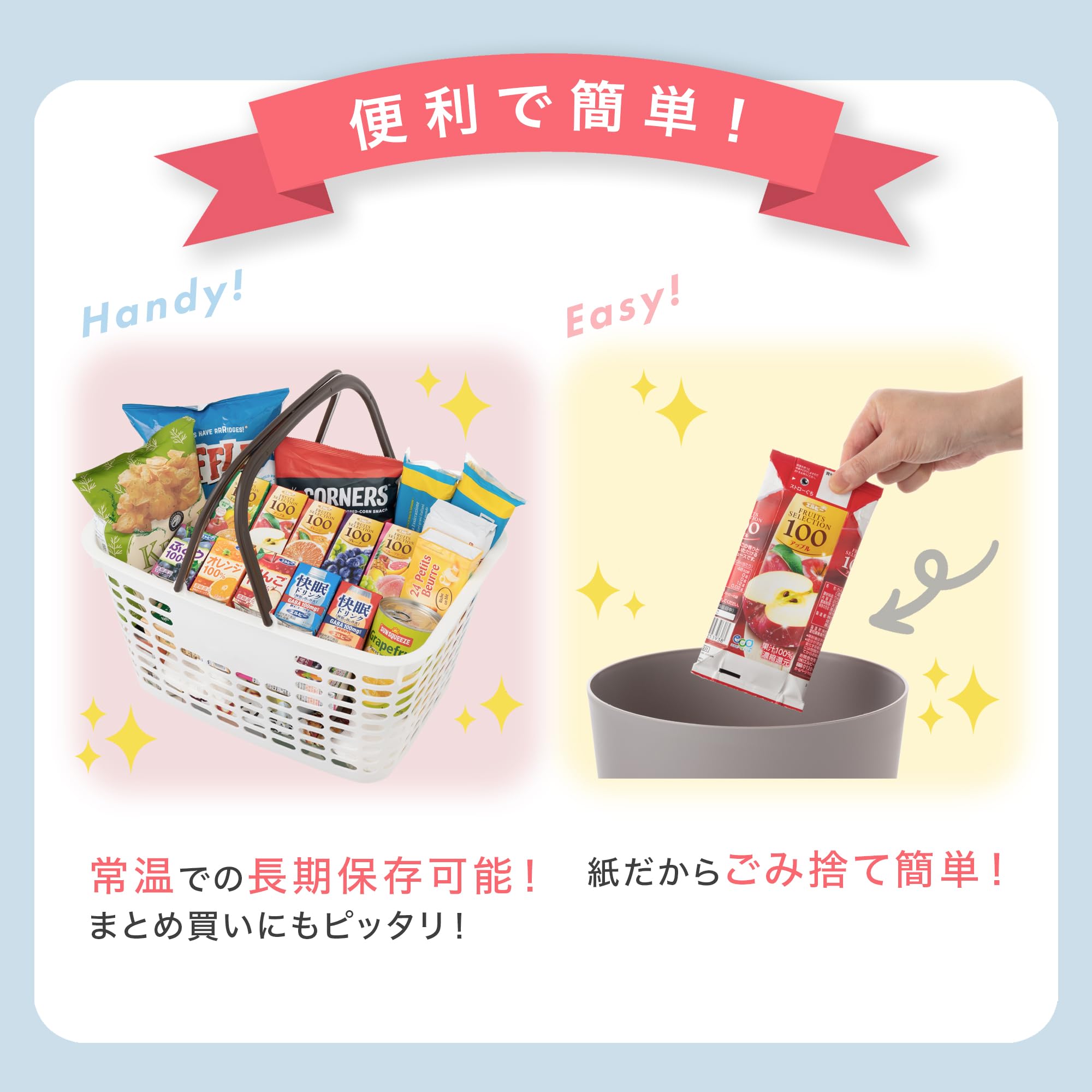 ◆爽やかなりんごの香りと味を楽しんでいただける「果汁100%ジュース」です。◆紙パックなので軽く外出時などの持ち運びにも便利で、飲み終わった後のゴミが少なく、行楽などにも最適です。落としても割れたりしないため、小さなお子様も安心してお飲みいただけます。◆常温保存ができるので、まとめてお買い上げいただけます。これを機に是非ともお買い求め下さい。