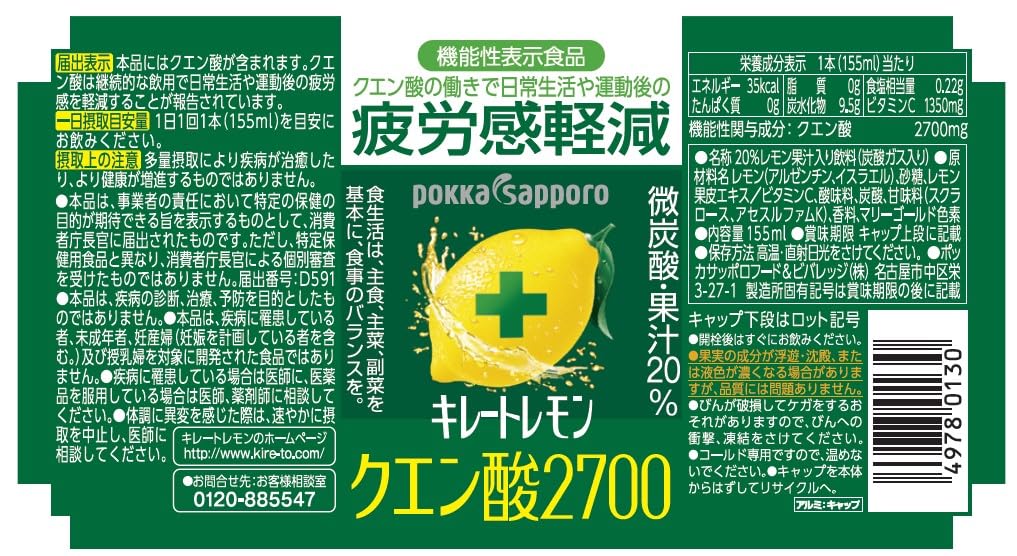 ポッカサッポロ キレートレモンクエン酸2700 155ml ×24本 機能性表示食品