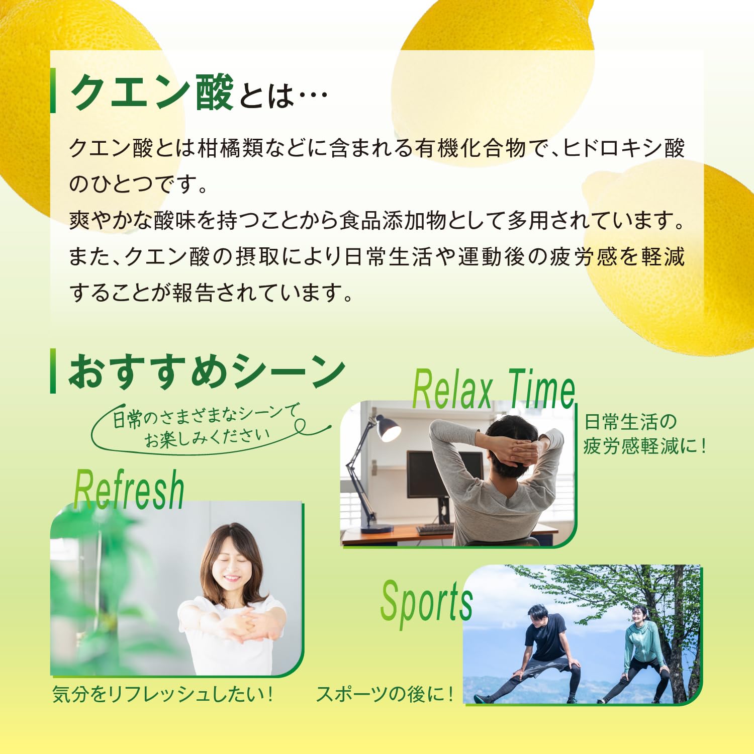 レモン1個分の果汁、ビタミンC1350mg、日常生活や運動後の疲労感を軽減 するクエン酸(機能性関与成分)が2700mg入った「機能性表示食品の小瓶ド リンク」です。レモンの酸味と炭酸の刺激でリフレッシュもできます。 ※レモン1個分=レモン果汁約30mlとして1本当たり1個分以上の果汁が含ま れています。