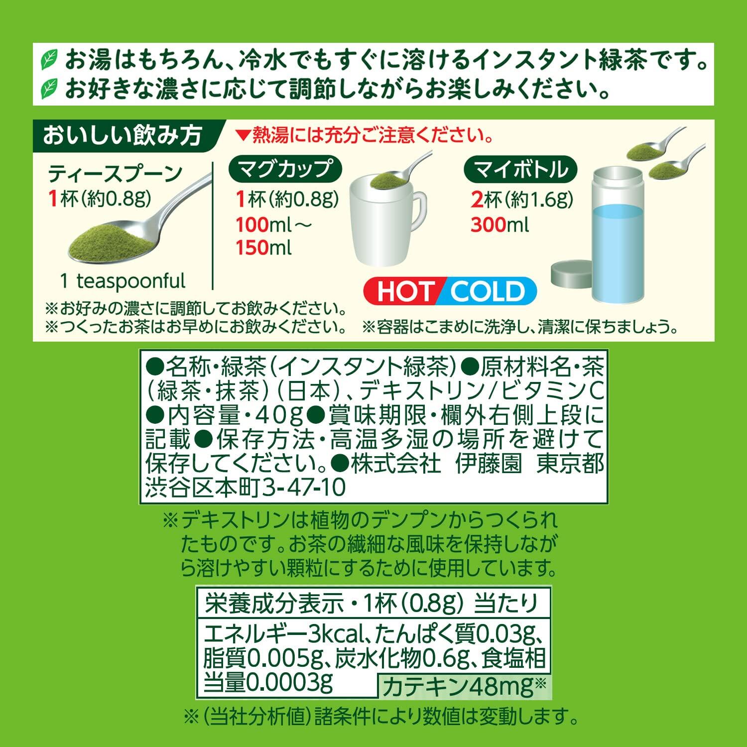 冷水でもお湯でもさらさらすぐ溶ける、インスタント緑茶