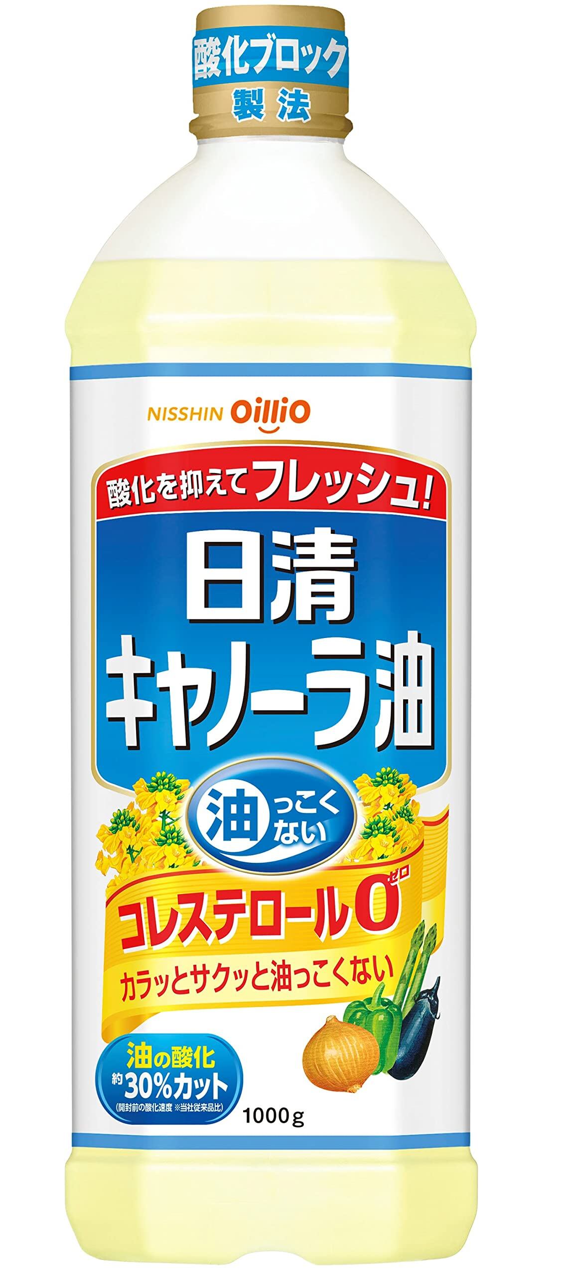 カラっとサクッと本当に「油っこくない」でおなじみの日清キャノーラ油です。成熟した品質の良い厳選「なたね」を使用し、酸化を抑えて油っこくない性状を生み出す「ライト&クリア製法」を採用。また油の酸化を防ぐ酸化ブロック製法により、油の酸化を約30%カットしています。 原材料・成分 食用なたね油(国内製造)