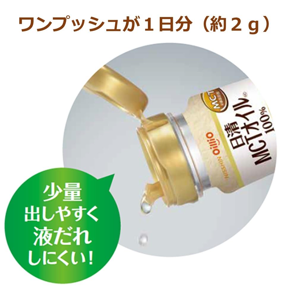 日清MCTオイルは、中鎖脂肪酸油100%の食用油です。無味無臭ですので、普段の食事や飲み物に混ぜたりかけたりするたけで、美容と運動に「良質なエネルギー」を、手軽に補給することができます。機能性食品であり、BMIが高めの方の体脂肪や内臓脂肪、ウエストサイズを減らします。