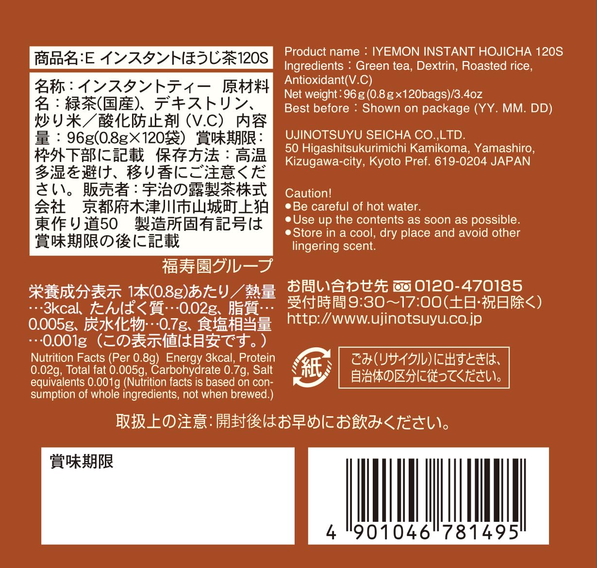 宇治の露 伊右衛門 インスタントほうじ茶スティック 120本入 粉末