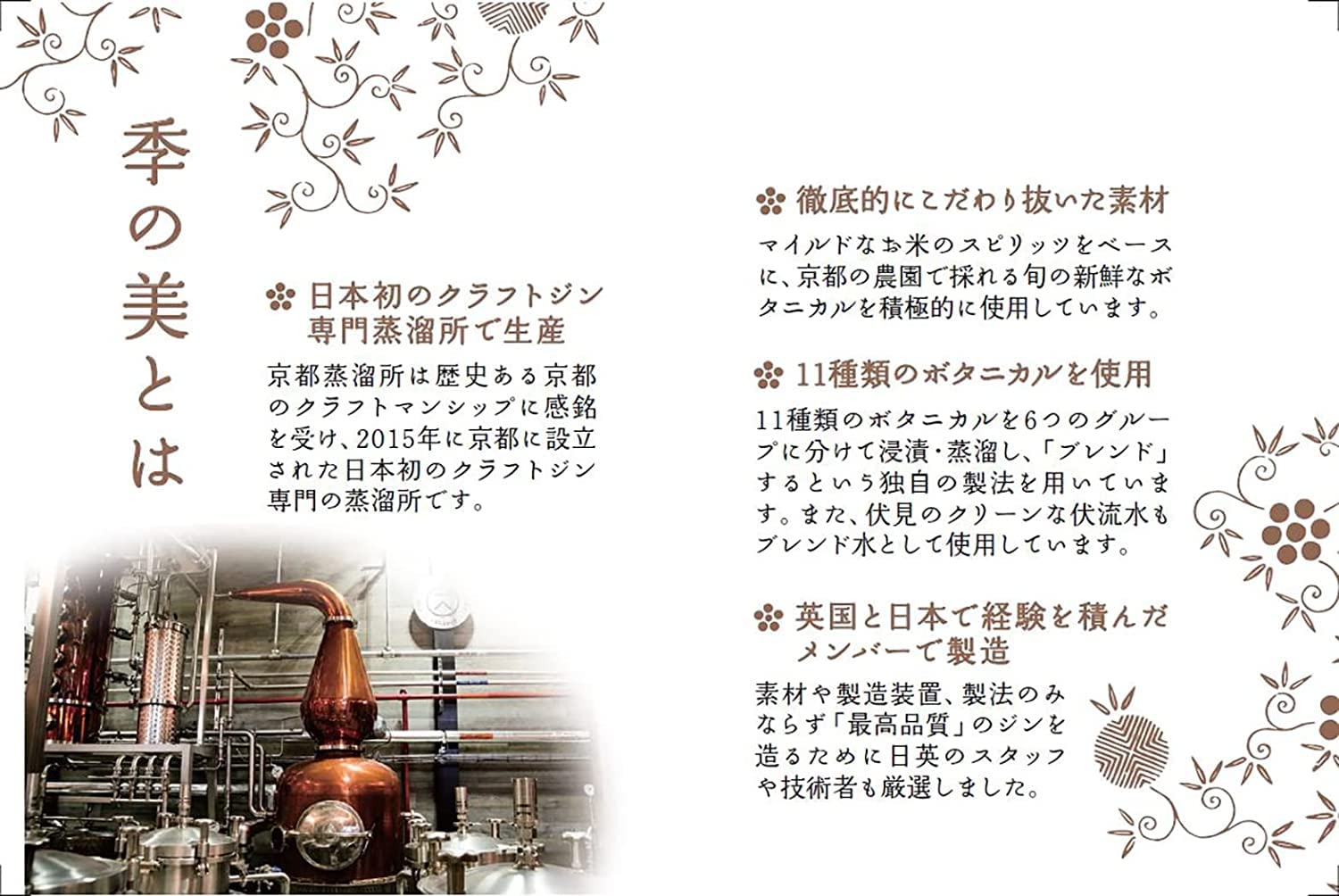 このボトルは日本ならではの「一升瓶」に季の美 京都ドライジンを詰めた、まさに和と洋が融合した革新的なジンとして世界に知られる「季の美」ならではのリリースです。ジンでは初となるお得な一升サイズで700mlボトル2.57本分! 年末年始シーズンに向けてのご贈答用としておすすめの1本。